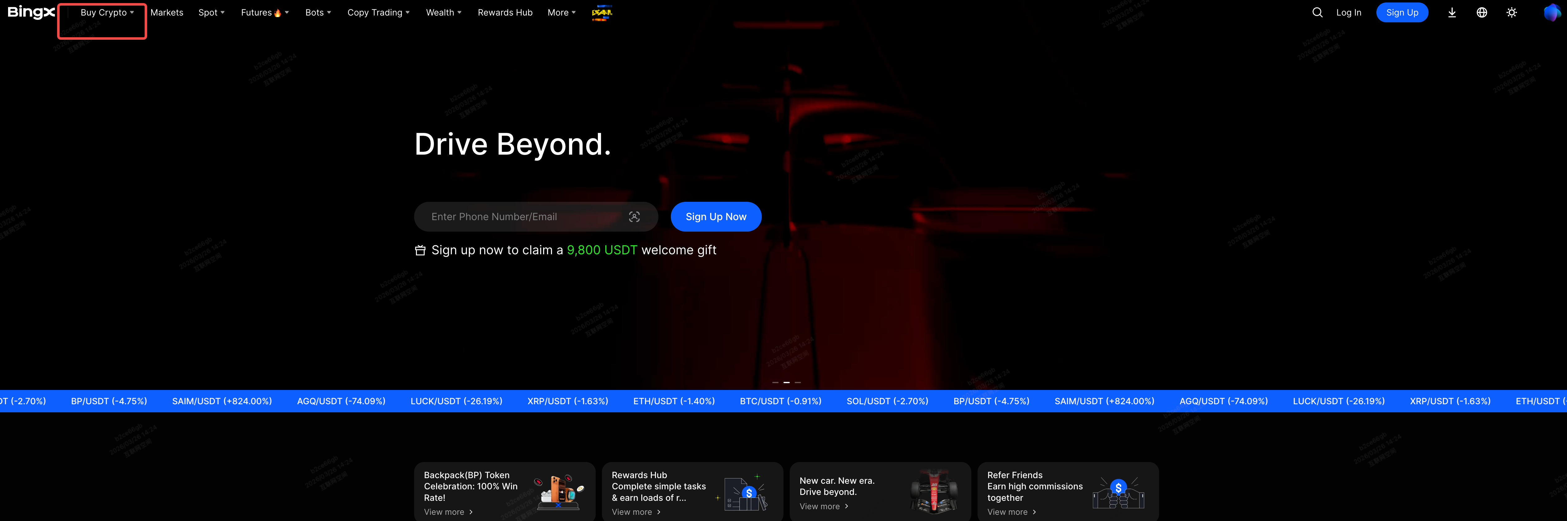 1. Melde dich auf der offiziellen BingX-Website an. Klicke auf der Startseite auf „Krypto kaufen“ und wähle „Quick Buy“, um die Seite zum Kauf von Kryptowährungen zu öffnen.