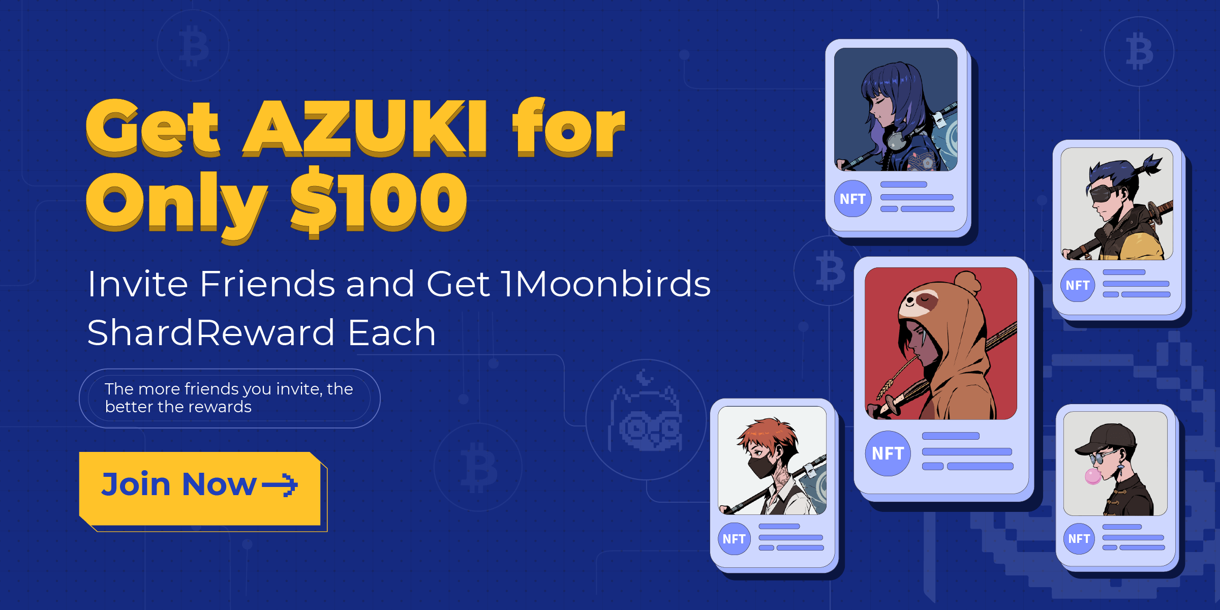 Get AZUKI for Only $100Invite Friends and Get 1 Moonbirds Shard Reward Each