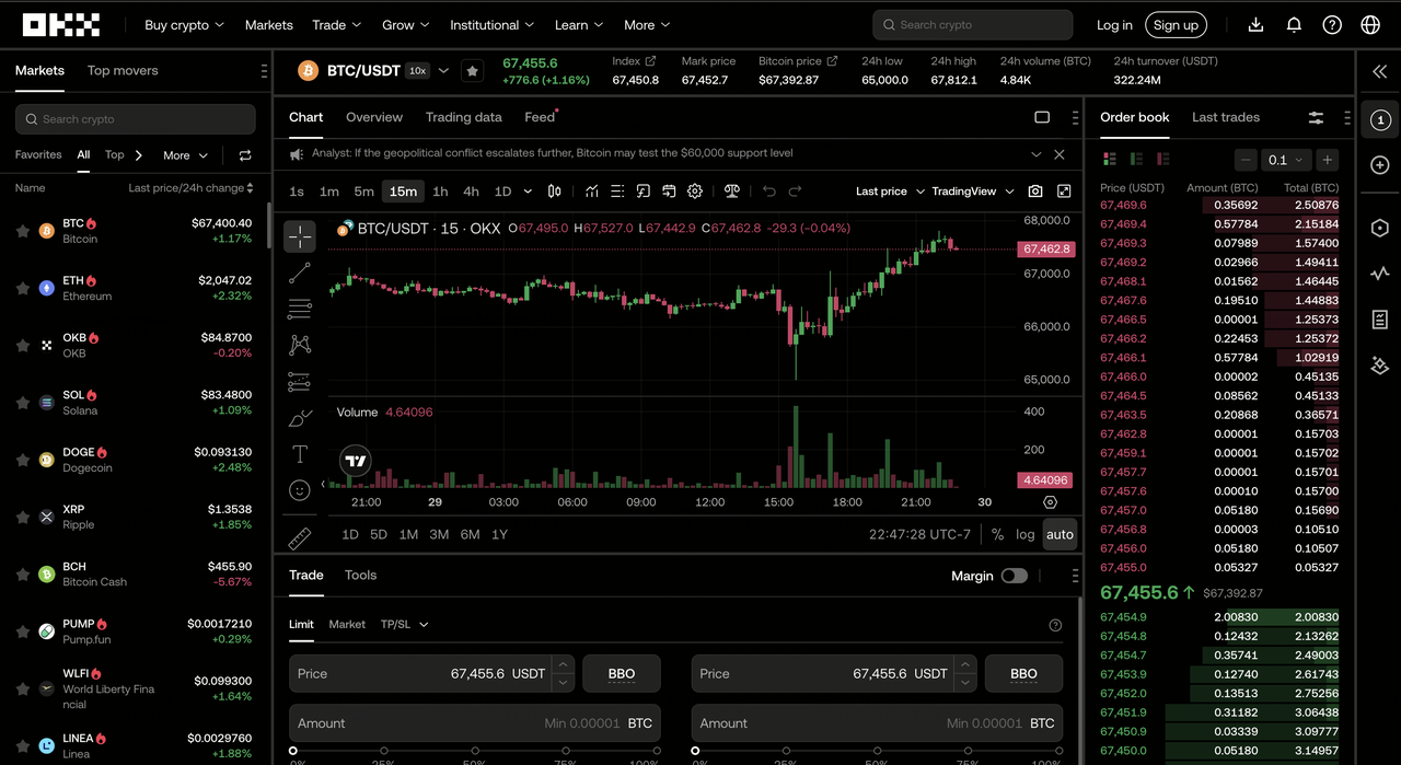 • OKX is a capable full-stack exchange known for deep liquidity, advanced trading tools, extensive derivatives offerings, and strong institutional-grade infrastructure. It appeals particularly to users who prefer high-volume execution and professional features.