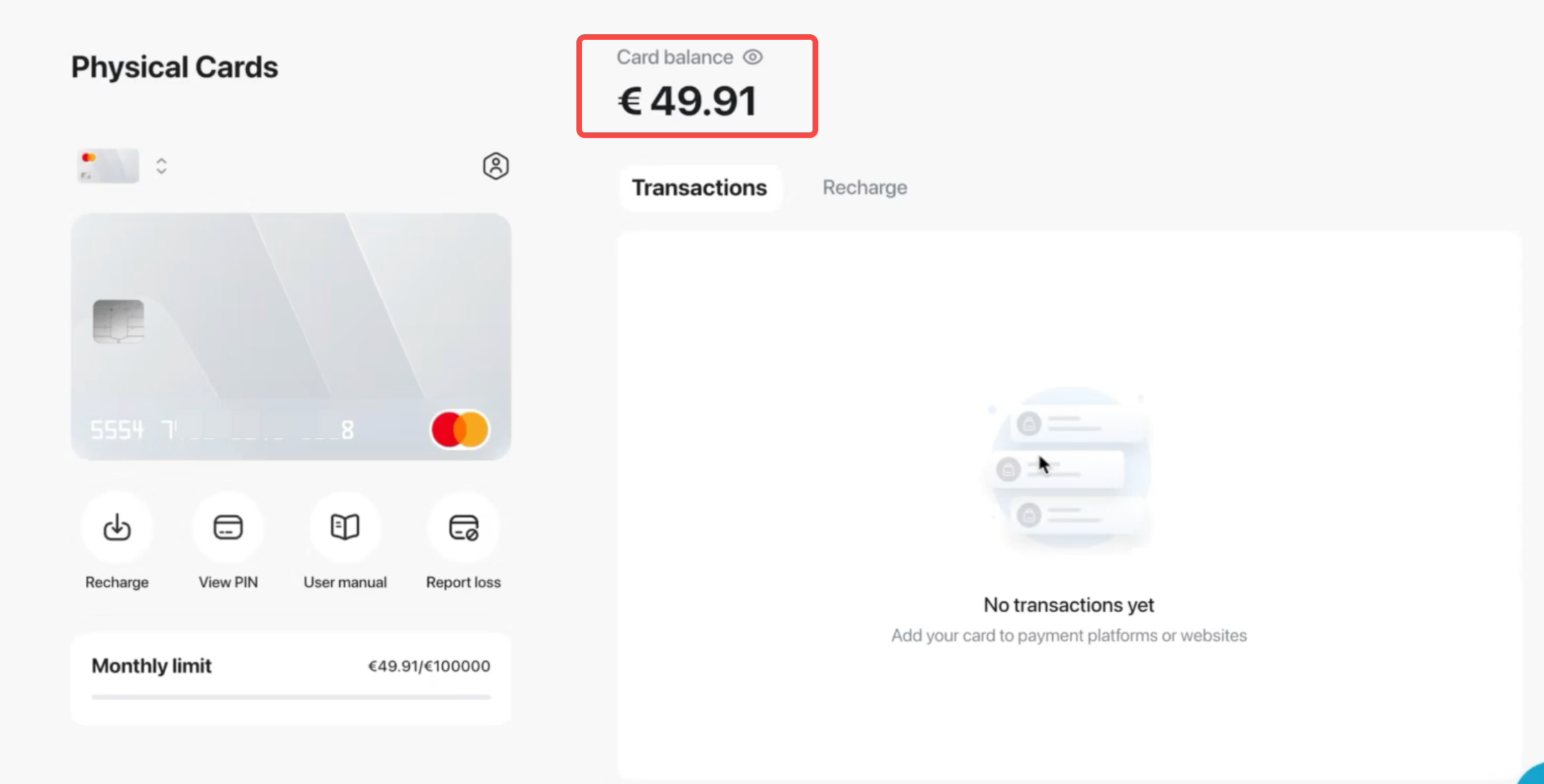 Step 8: Log in to BingX and hover your mouse over "More" on the top navigation bar. Click "BingX Card" -> "Manage My Card" - "Recharge" to add funds to your card.