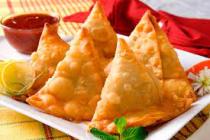 A samosa (/səˈmoʊsə/) or singara is a fried South Asian[2] pastry with a savoury filling, including ingredients such as spiced potatoes, onions, and peas. It may take different forms, including triangular, cone, or half-moon shapes, depending on the region.[3][4][5] Samosas are often accompanied by chutney, and have origins in medieval times or earlier.[3] Samosas are a popular entrée, appetizer, or snack in the cuisines of South Asia, the Middle East, Central Asia, East Africa and their South Asian diasporas.