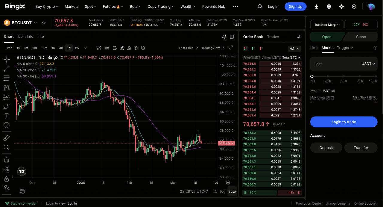 - BingX menonjol pada tahun 2026 sebagai salah satu platform yang paling mudah diakses, inovatif, dan berpusat pada pengguna untuk perdagangan spot dan derivatif. Dengan ekosistem copy trading terdepan di industri, peningkatan bertenaga AI, antarmuka intuitif, struktur biaya yang kompetitif, akun demo, opsi leverage tinggi, likuiditas ritel yang kuat, dan fitur sosial yang mulus, platform ini memberikan lingkungan menyeluruh yang luar biasa untuk trader di setiap tingkat pengalaman.