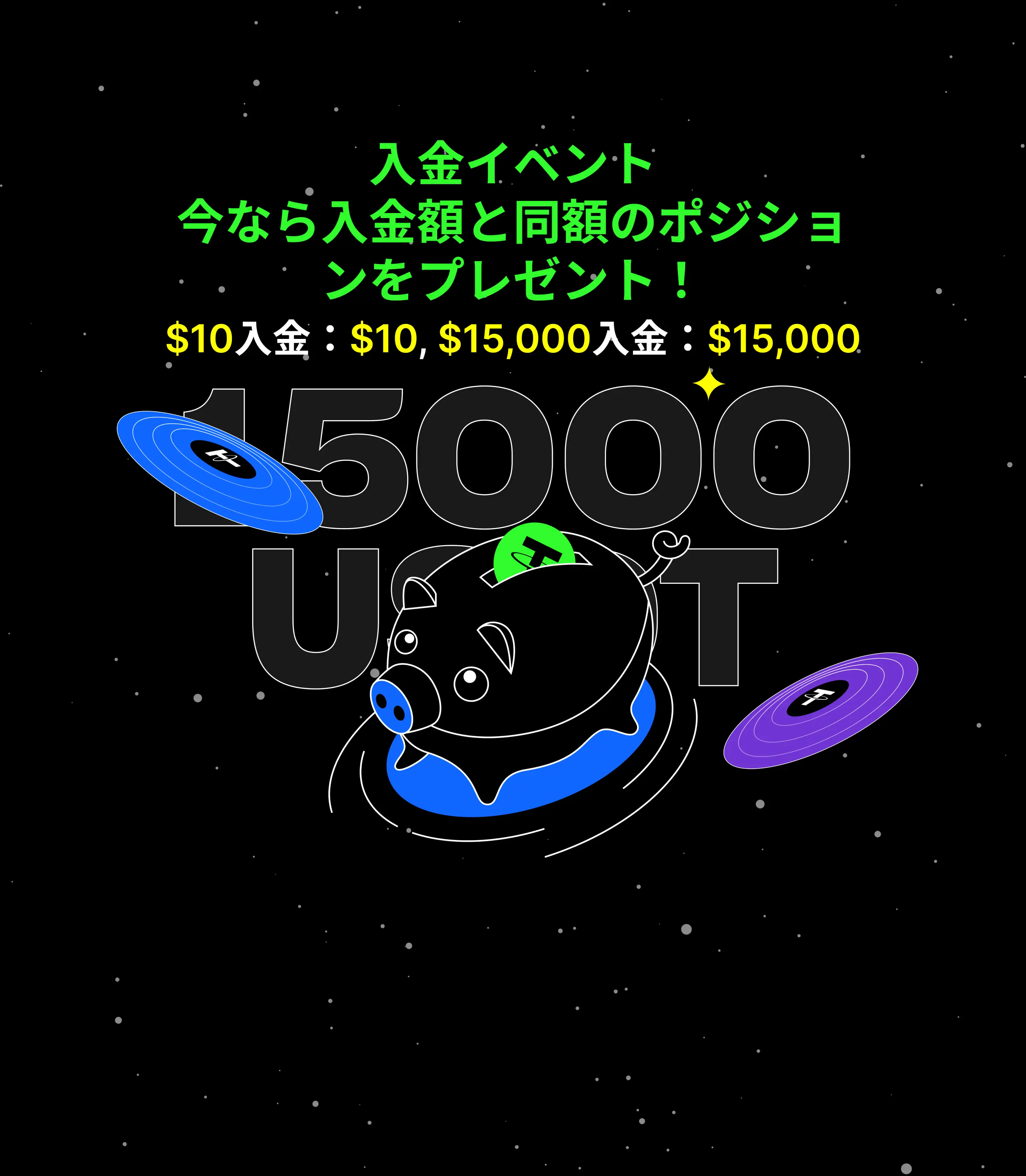 4 報酬について:各タスクの達成条件に応じた報酬は累積されます。対象となる純入金額を満たすと、対応する報酬がアンロックされます。ボーナス価値 = 先物ポジション価値 = ボーナス額 × レバレッジ。イベント期間中に純入金額が$15,000に達すると、最大$15,000の先物ポジション報酬を獲得できます。