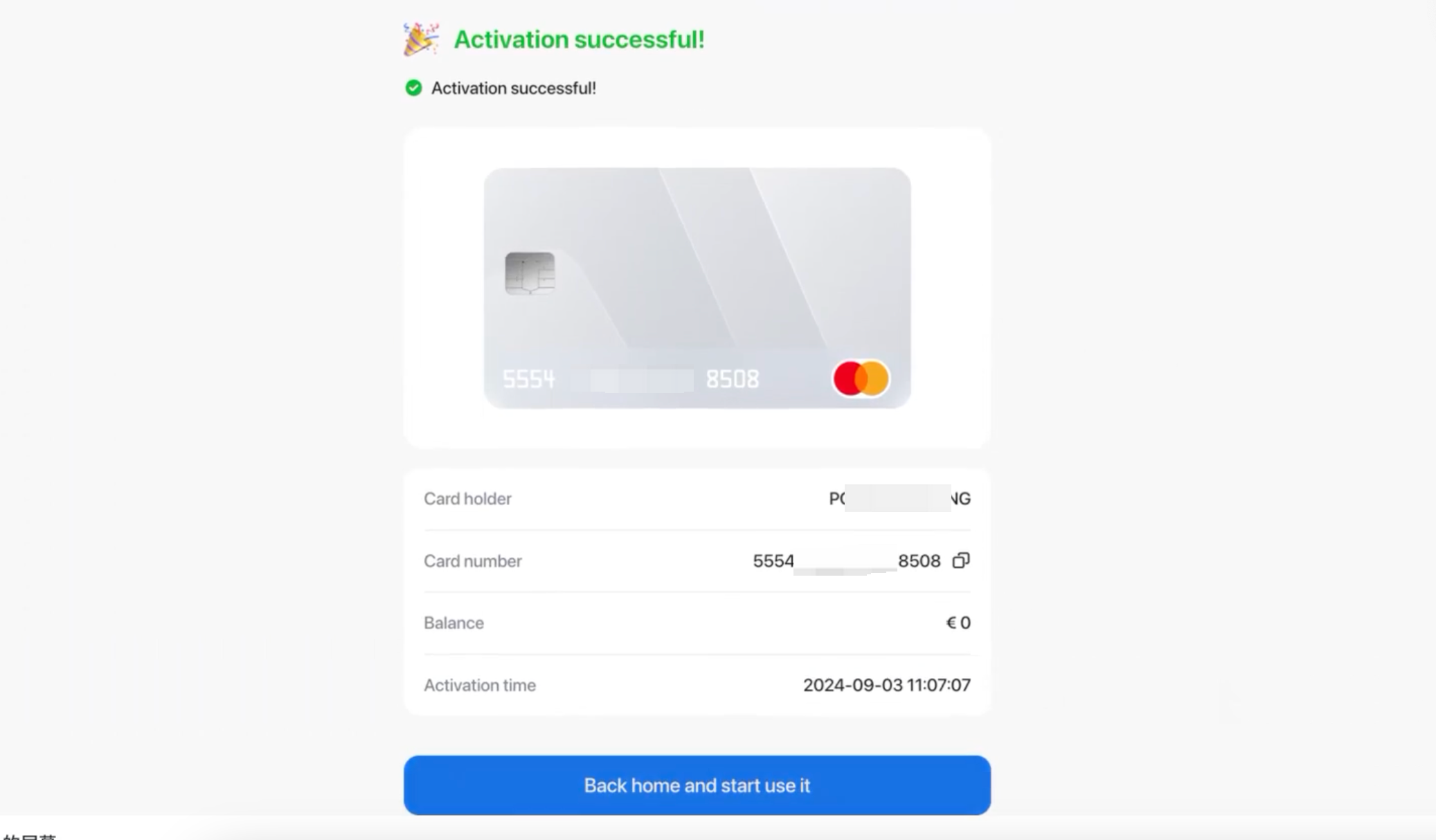 ステップ6:カードの有効化が完了しました。