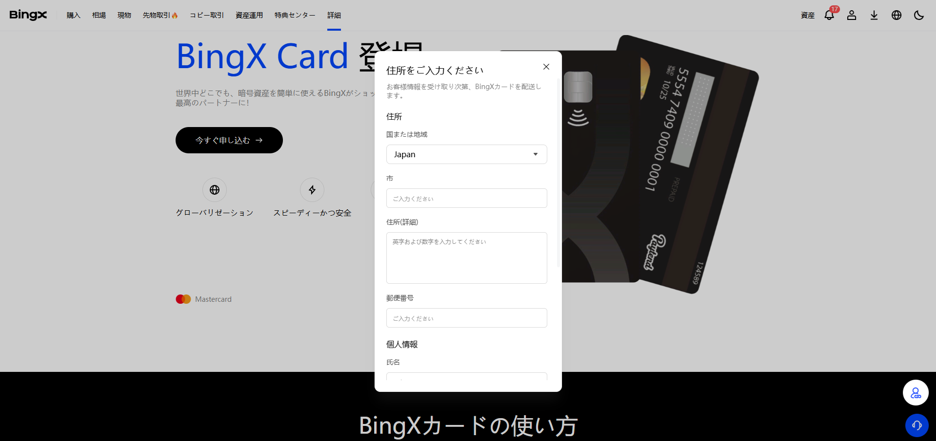ステップ2:BingXカードの配送先の住所を入力してください。その後、本人確認を完了させてください。