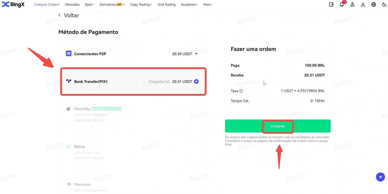 2. Cum cumpăr Bitcoin cu PIX pe BingX?