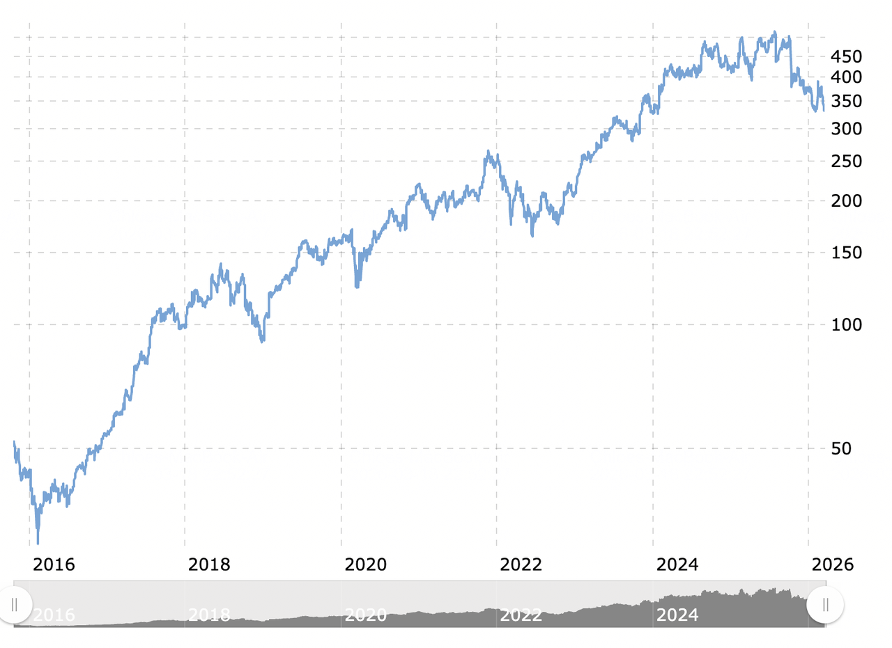 Tăng Trưởng Cổ Phiếu Ferrari từ 2016-2026 Nguồn: MacroTrends