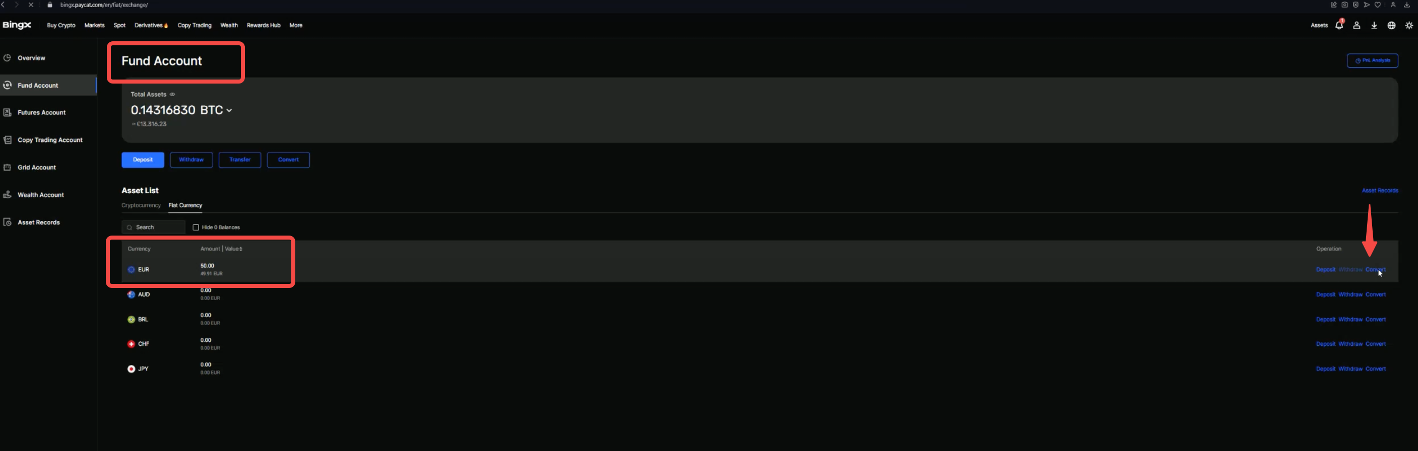 Bước 1: Truy cập "Tài khoản Quỹ" - "Fiat" - "Chuyển đổi" - "Chuyển đổi fiat".
