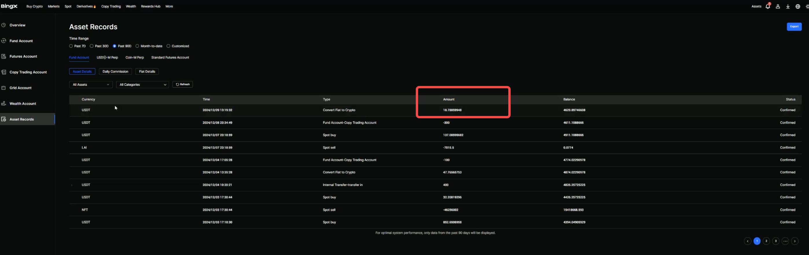 Bước 3: Nhấn vào "Tài sản" - "Ghi chép tài sản" để xem lịch sử chuyển đổi của bạn.