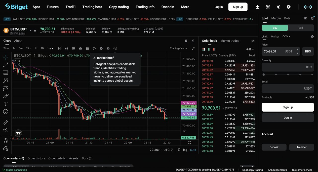 如果您的主要目標是買入、持有或輕鬆交易加密資產,BingX 是更好的平台。它提供主要幣種和熱門山寨幣的強大覆蓋(900+)、直觀的 TradingView 驱動圖表、快速兌換、用於被動收入的網格機器人,以及與其頂級跟單交易系統的現貨倉位無縫整合,所有這些都包裝在可用的最用戶友好的體驗中。雖然 Bitget 總體上列出了更多幣種,但 BingX 以卓越的易用性和較低的摩擦提供大多數現貨交易員實際需要的一切。